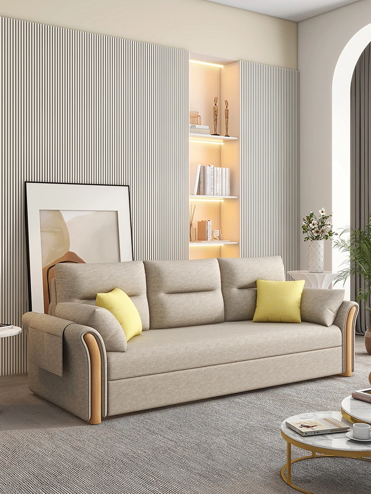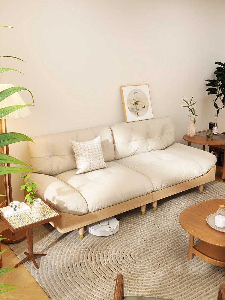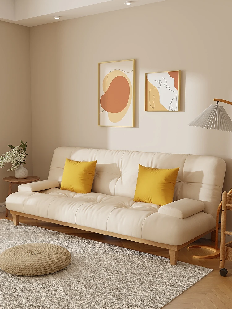 多機能折りたたみ式無垢材ソファベッド|クリームカラーでおしゃれなデザイン|狭小スペースでも活躍するシンプルなネット人気ソファ!リビングにぴったりのナチュラルテイスト!
