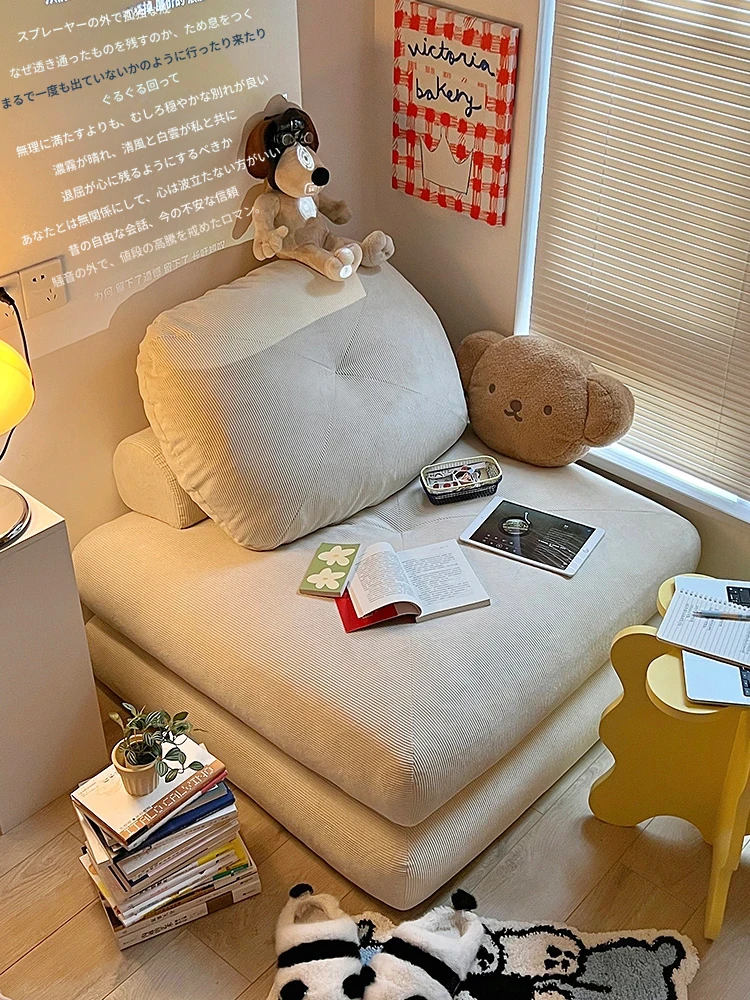 リラックスできる一人用ソファチェア - 寝室やダイニングに最適!PC作業にも使える安心の背もたれ付き、宿舎にもぴったり!座っても寝られる2wayデザインで、家庭でもリラックスしたひと時をお楽しみください。