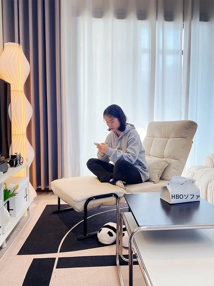 北欧スタイルの洗練された一人用リクライニングソファ|くつろぎの空間を演出するシンプルでモダンなデザイン|リビング、寝室、バルコニーに最適な家庭用チェア