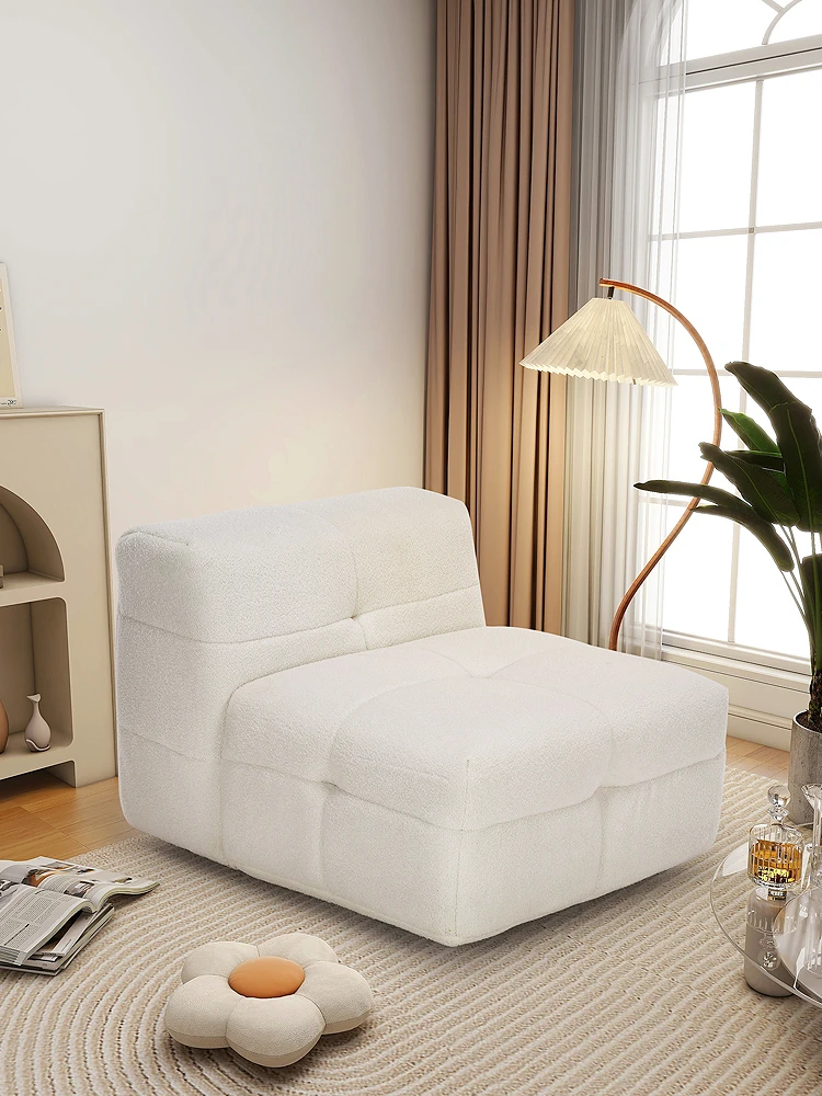 クリーミーなマシュマロ風ラウンジソファ - 寝転んでもリラックスできる、リビングやバルコニー、寝室にぴったりのキュートなスクエアデザインのラムファー一人用ソファ!快適なひとときをお楽しみください。