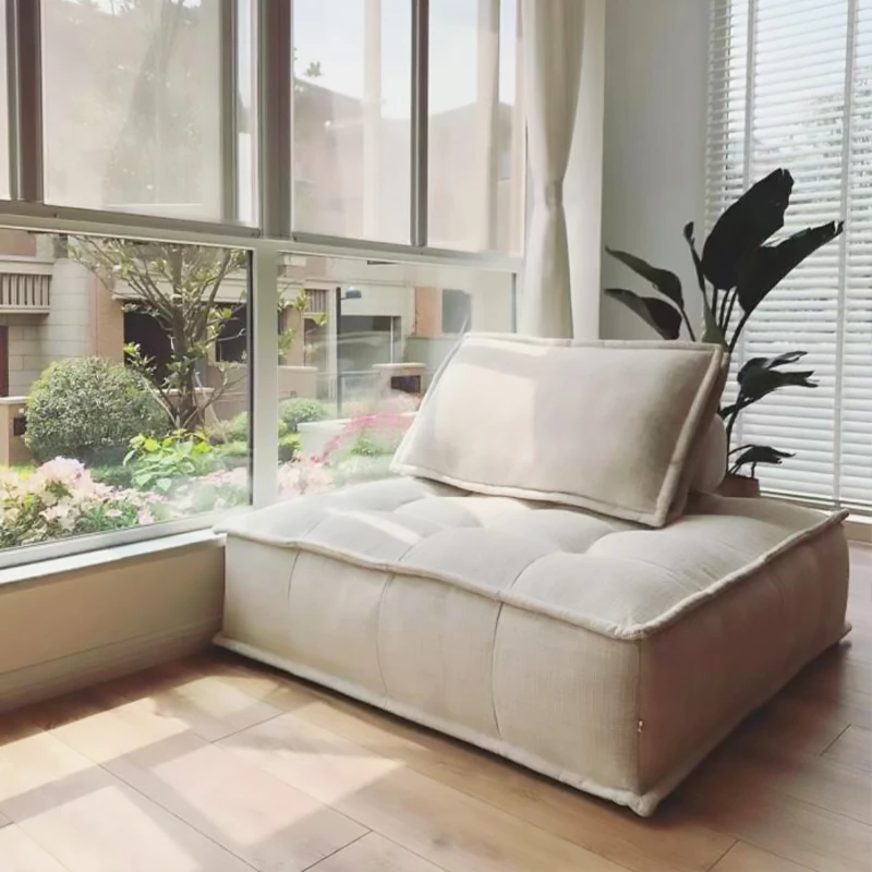 クリーニング簡単!マシュマロソファー小型ユニット、豆腐風の布製リビング・バルコニー用畳、クリーム色のシンプルモダンモジュラーソファ、心地良い空間を演出します。