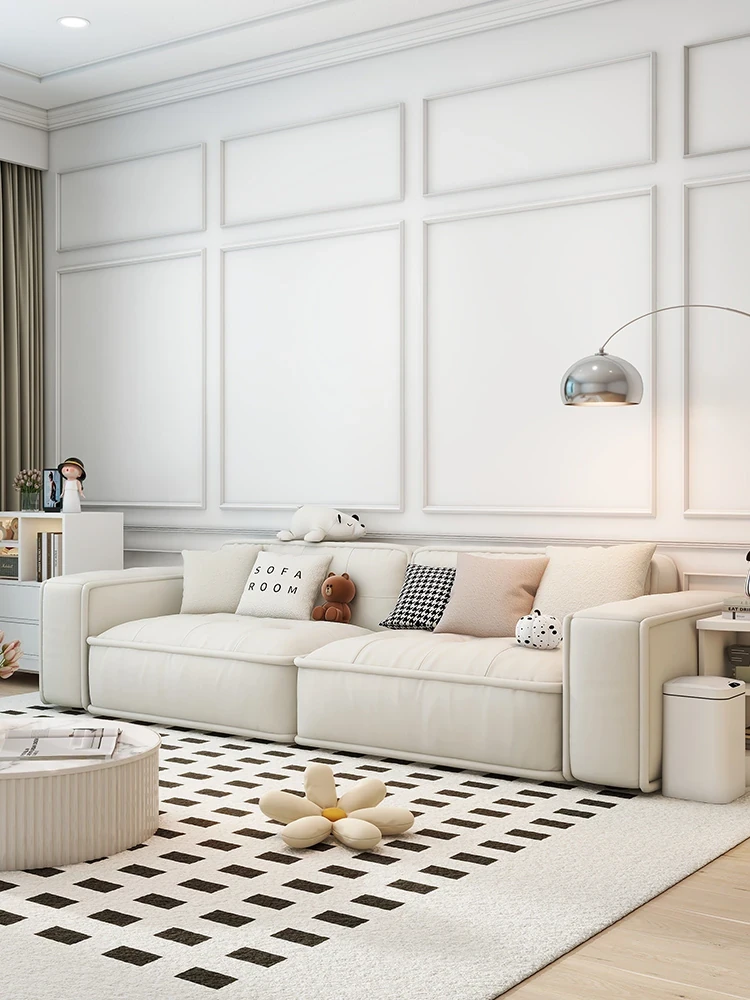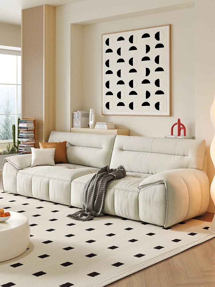 フレンチクリーム風ファブリックソファ 小型リビング向け インスタ映えのマシュマロモダンミニマリスト ラグジュアリー直線ソファ 快適さとスタイルを両立したおしゃれな選択!