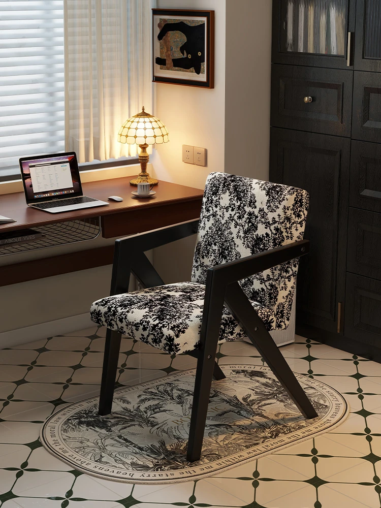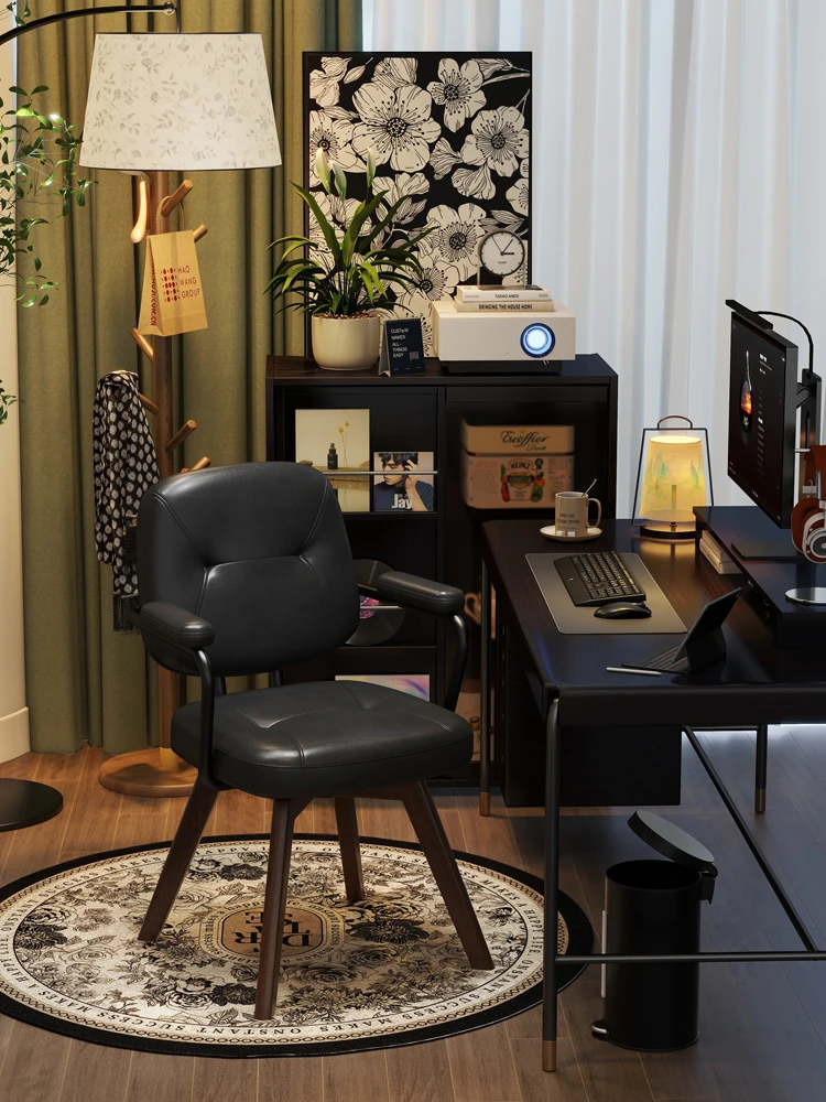快適な自宅用木製コンピューターチェア|ラグジュアリーな雰囲気で長時間座っても疲れにくい|書斎や寝室での学習・メイクに最適|寮生活にもぴったりな背もたれ付きチェア