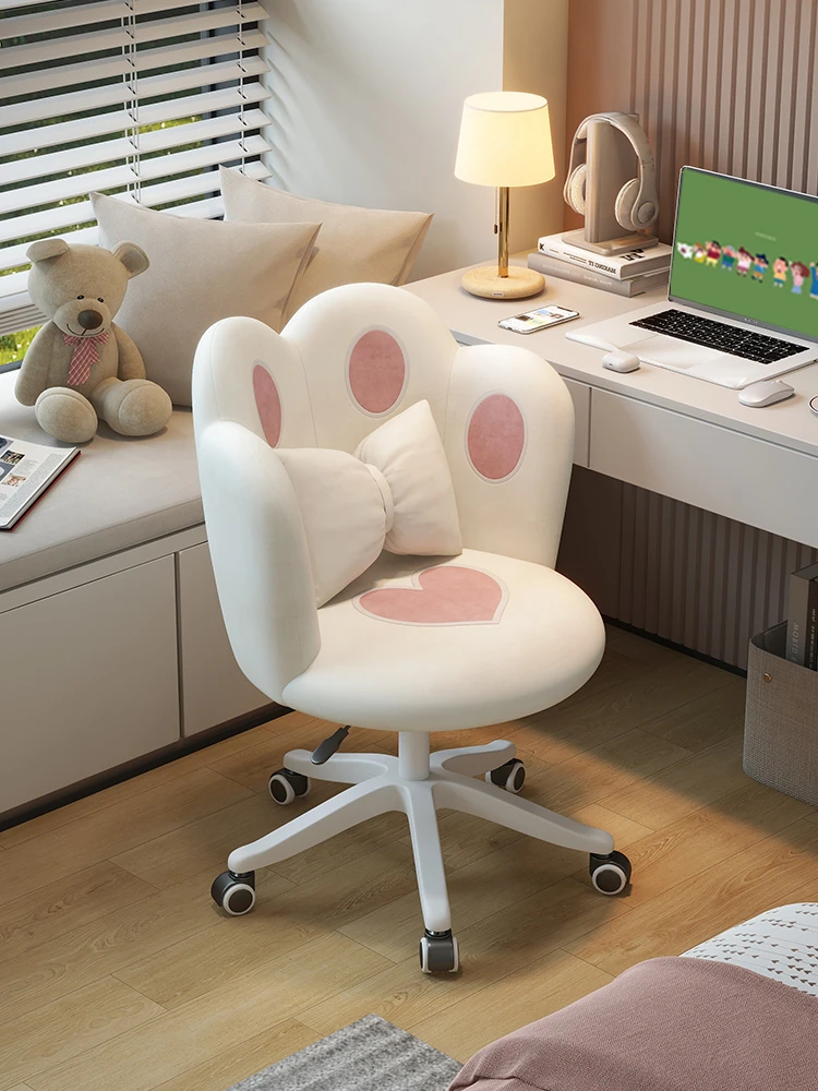 可愛らしい女子向けのコンピュータチェア!自宅や寝室にぴったりの快適な回転式昇降チェア。背もたれ付きで、人気のメイクアップチェアとしても最適なデスクチェアです!