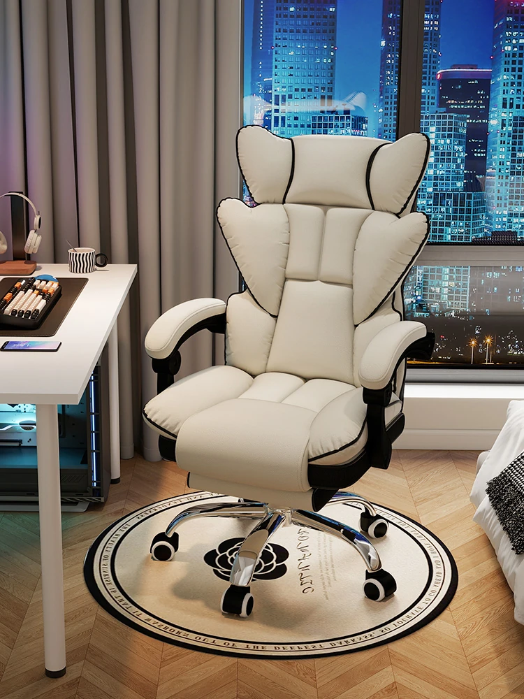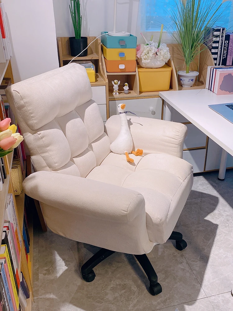 軽奢感溢れるコンピューターチェア|快適な座り心地で長時間作業も楽々!|女の子の化粧にも最適なデザイン|書斎や寝室にもぴったりな背もたれ付きオフィスチェア