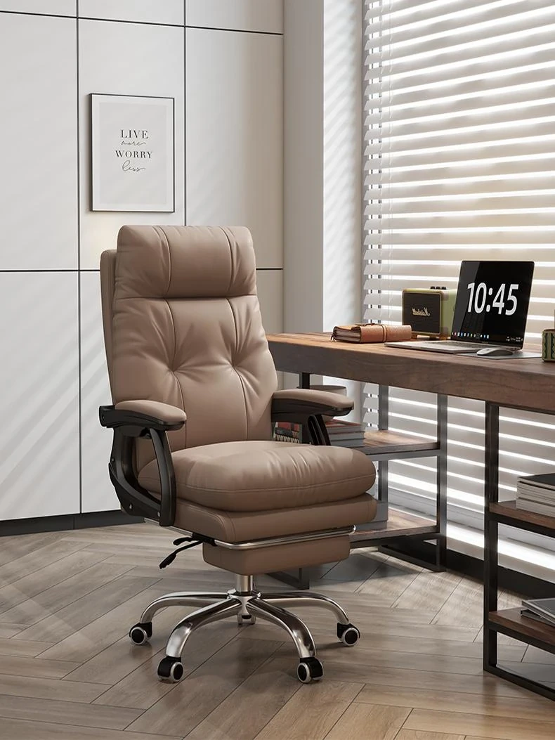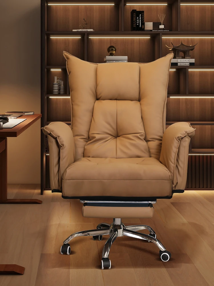 本革製の快適なオフィスチェア - 自宅用のリラックスソファ椅子、長時間の座り心地抜群!背もたれ付きで、オフィスや書斎での昼寝にも最適。ビジネスシーンでの疲れを軽減し、あなたの作業効率を向上させます。