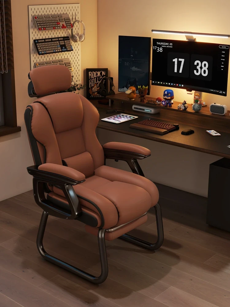 弓形デザインの快適な家庭用パソコンチェア - 長時間の座り心地抜群!オフィスやデスクに最適、リクライニング機能付きで、社長やゲーマーにもぴったりのソファチェア。固定脚で安定感も◎