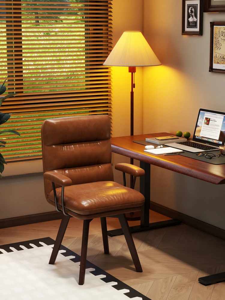 Comfortable Home Office Chair - Vintage Solid Wood Computer Chair for Long Hours, Ideal for Study, Bedroom, and Makeup Use - Stylish Design for Modern Living Spaces