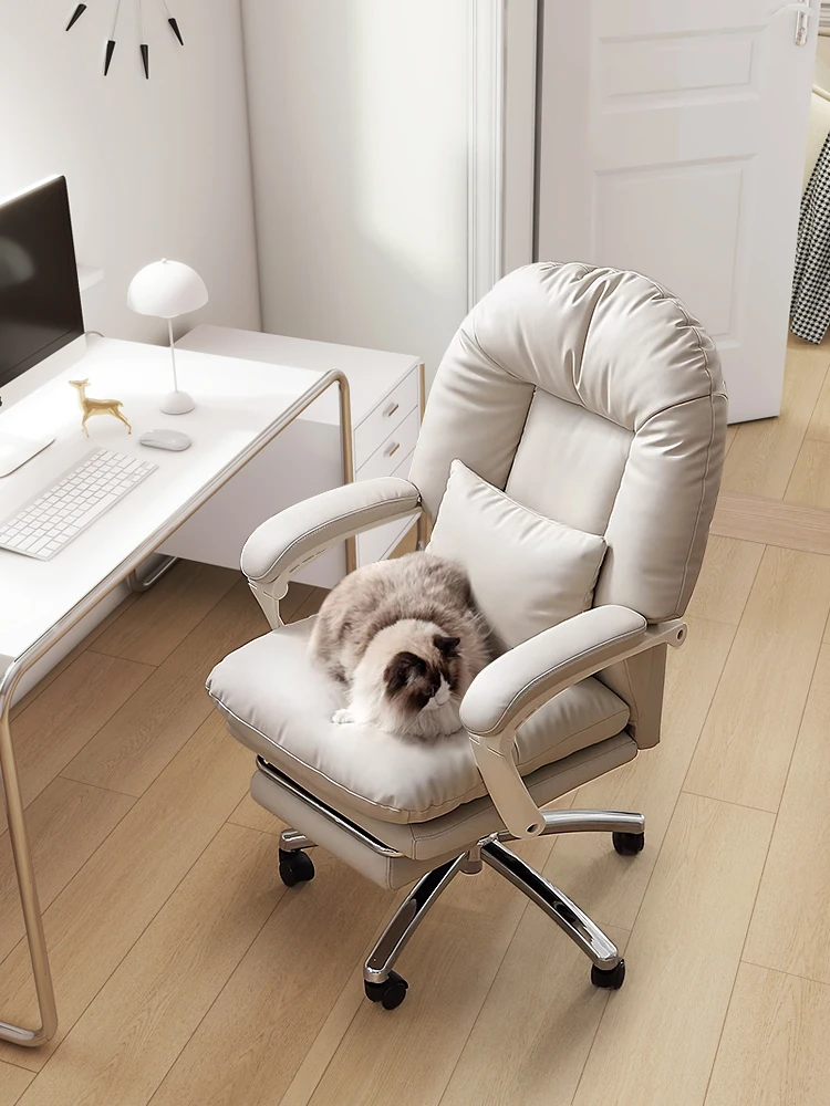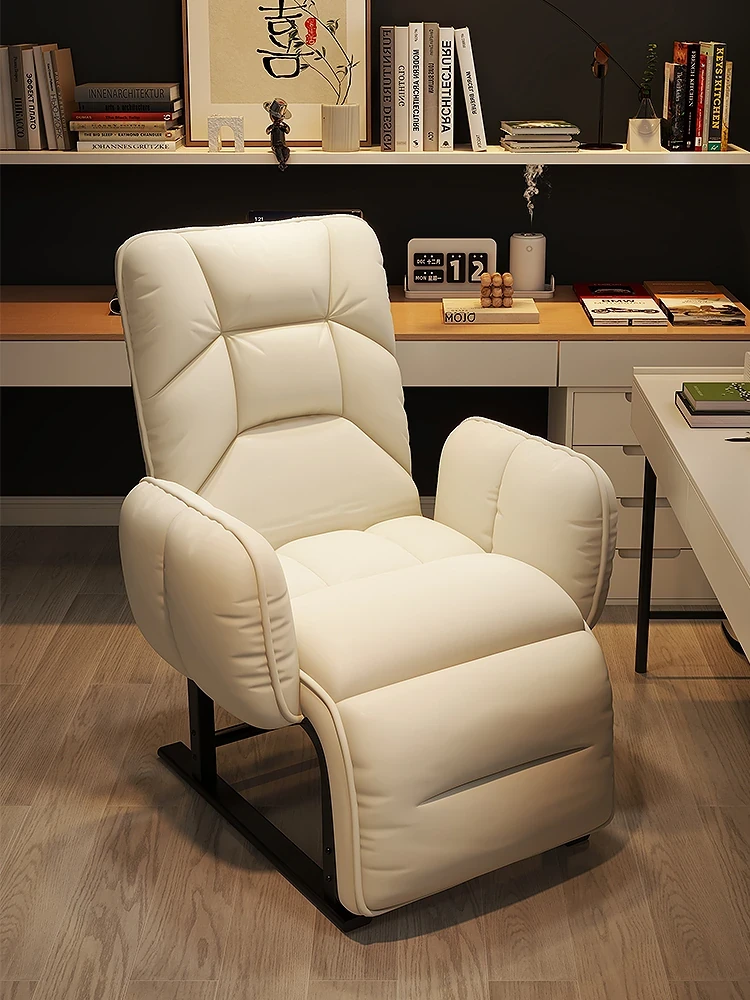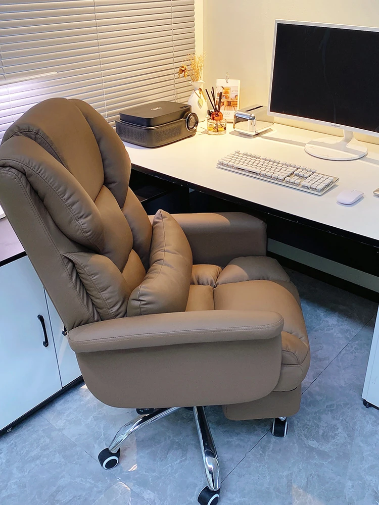Luxurious Genuine Leather Computer Chair – Stylish Home Recliner Sofa with Adjustable Backrest for Office and Study Use, Perfect for Work and Relaxation.