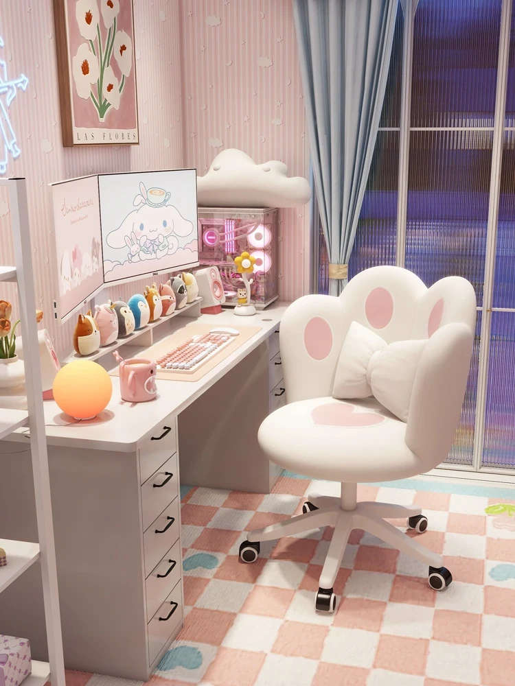 Cute Girls' Gaming Chair - Stylish Swivel Desk Chair with Adjustable Height & Backrest for Bedroom, Dorm, and Makeup | Comfortable & Trendy Design