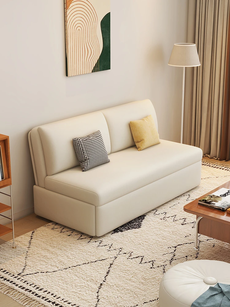 "Stylish Solid Wood Sofa Bed - Multifunctional Foldable Design for Small Spaces, Creamy Aesthetic, Simple and Chic for Modern Living Rooms"