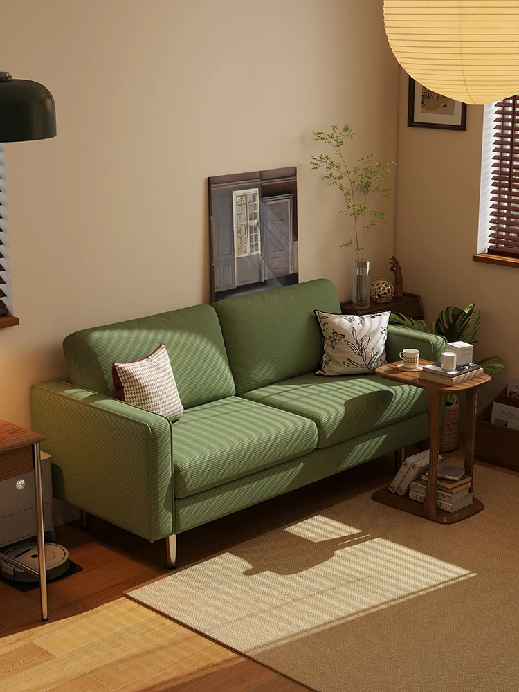 Vintage Corduroy Sofa for Small Spaces - Minimalist Japanese-style Double Sofa for Boutique Clothing Stores - Perfect for Cozy Living Rooms