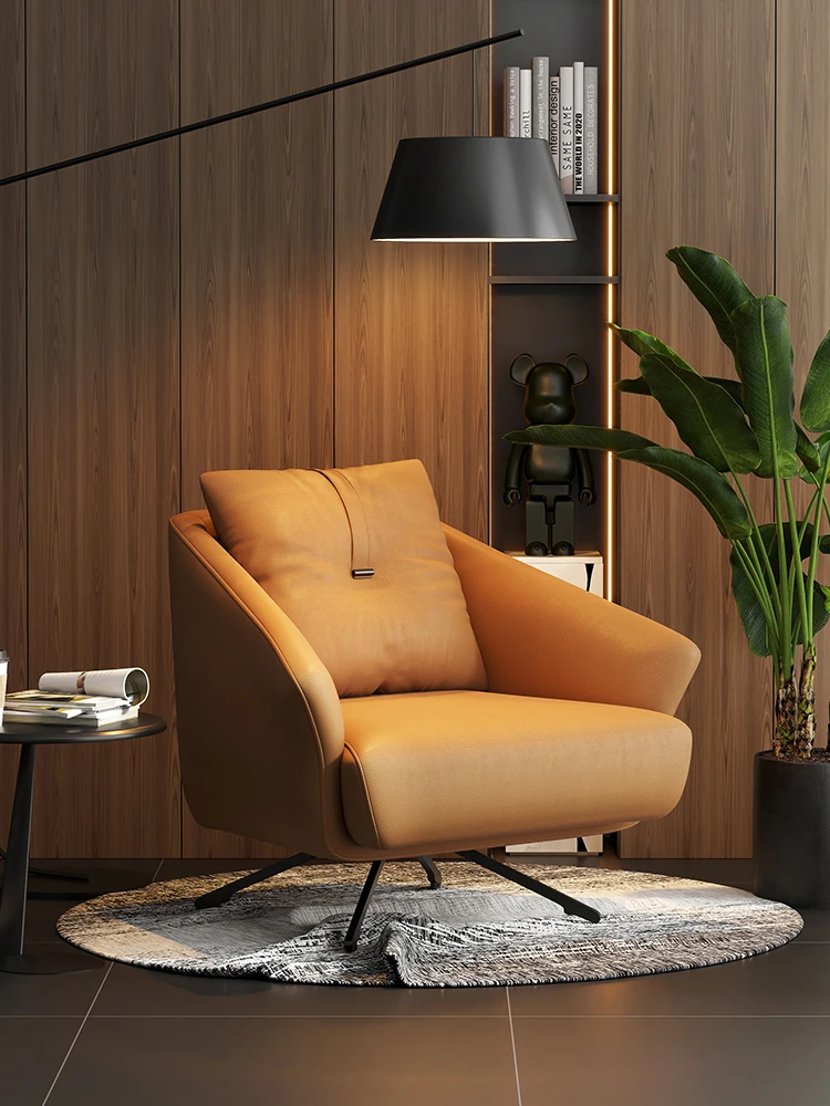 Elegant Italian Single Lounge Chair - Modern Minimalist Rotating Armchair for Living Room and Balcony - Stylish Designer Chair with Comfortable Backrest - Perfect for Relaxation and Sophistication
