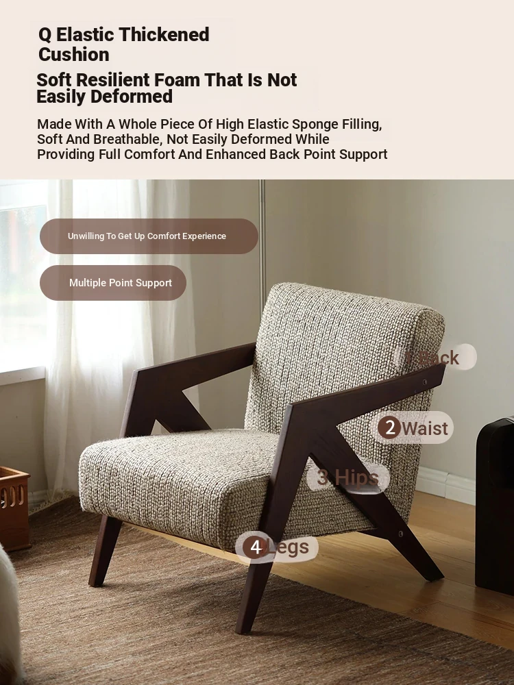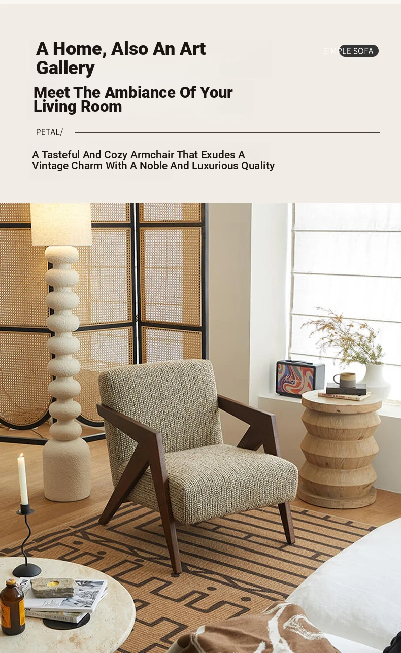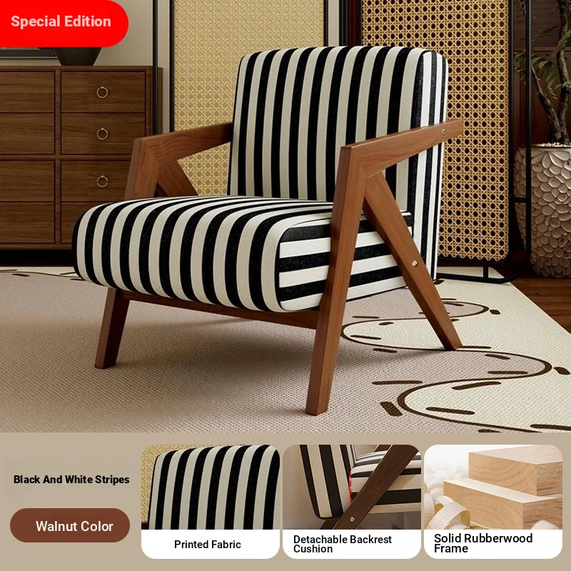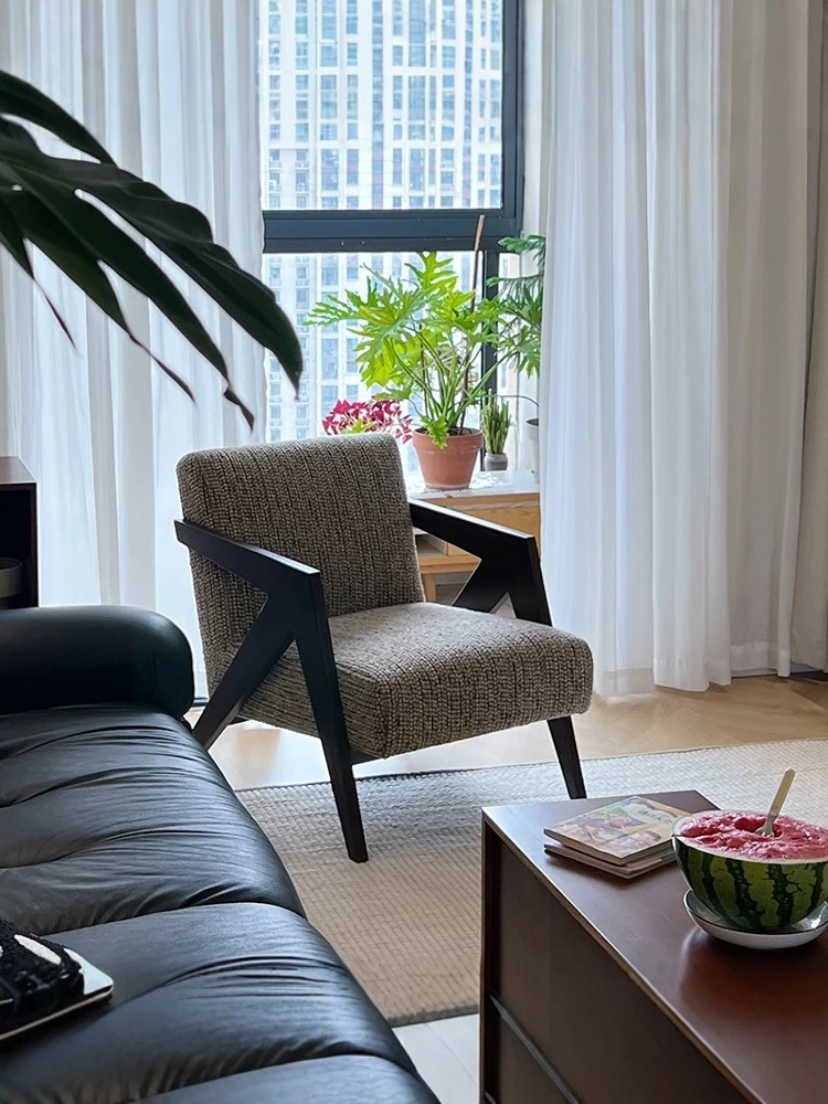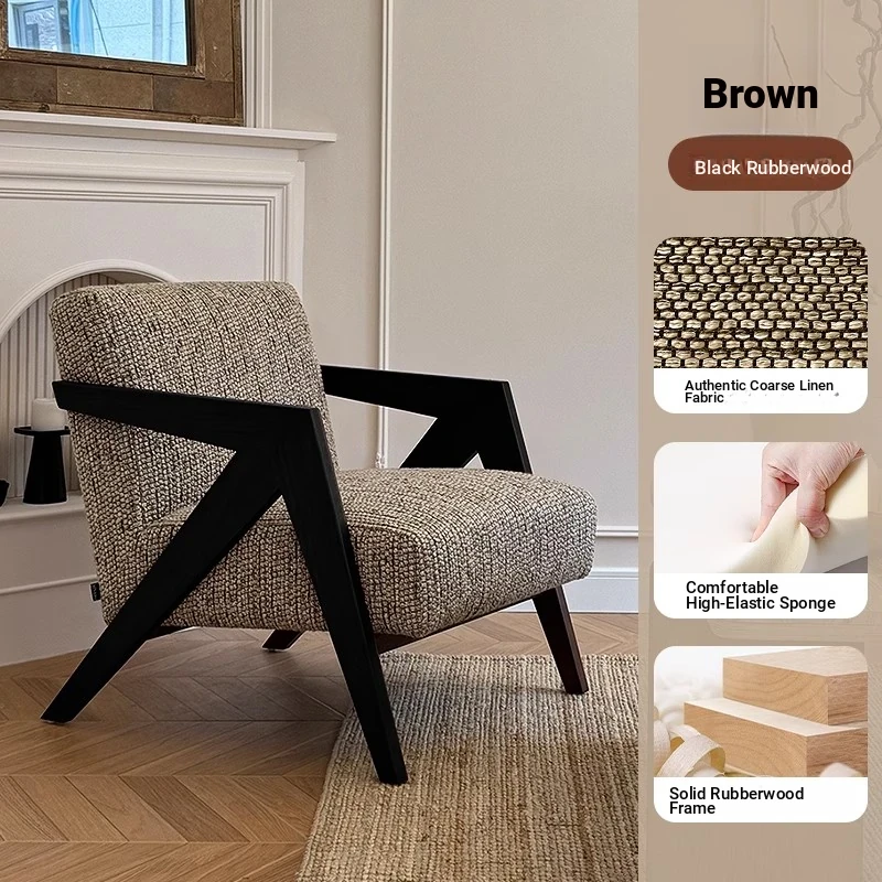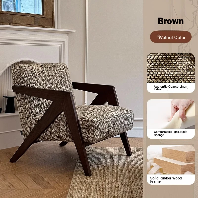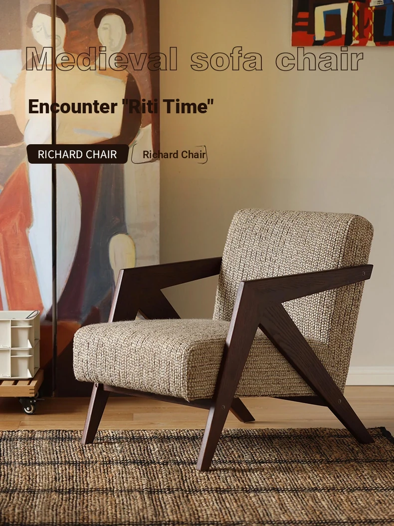 Richard French Designer Single Sofa - Vintage Style Lounge Chair for Living Room and Balcony, Elegant High-End Solid Wood Seating, Perfect for Leisure and Relaxation