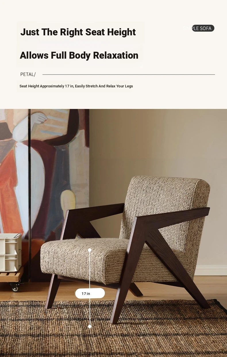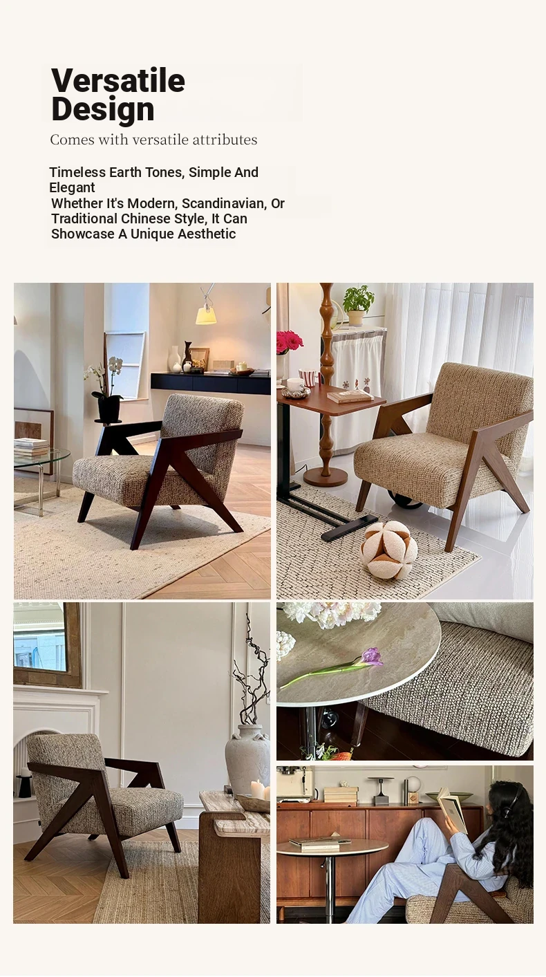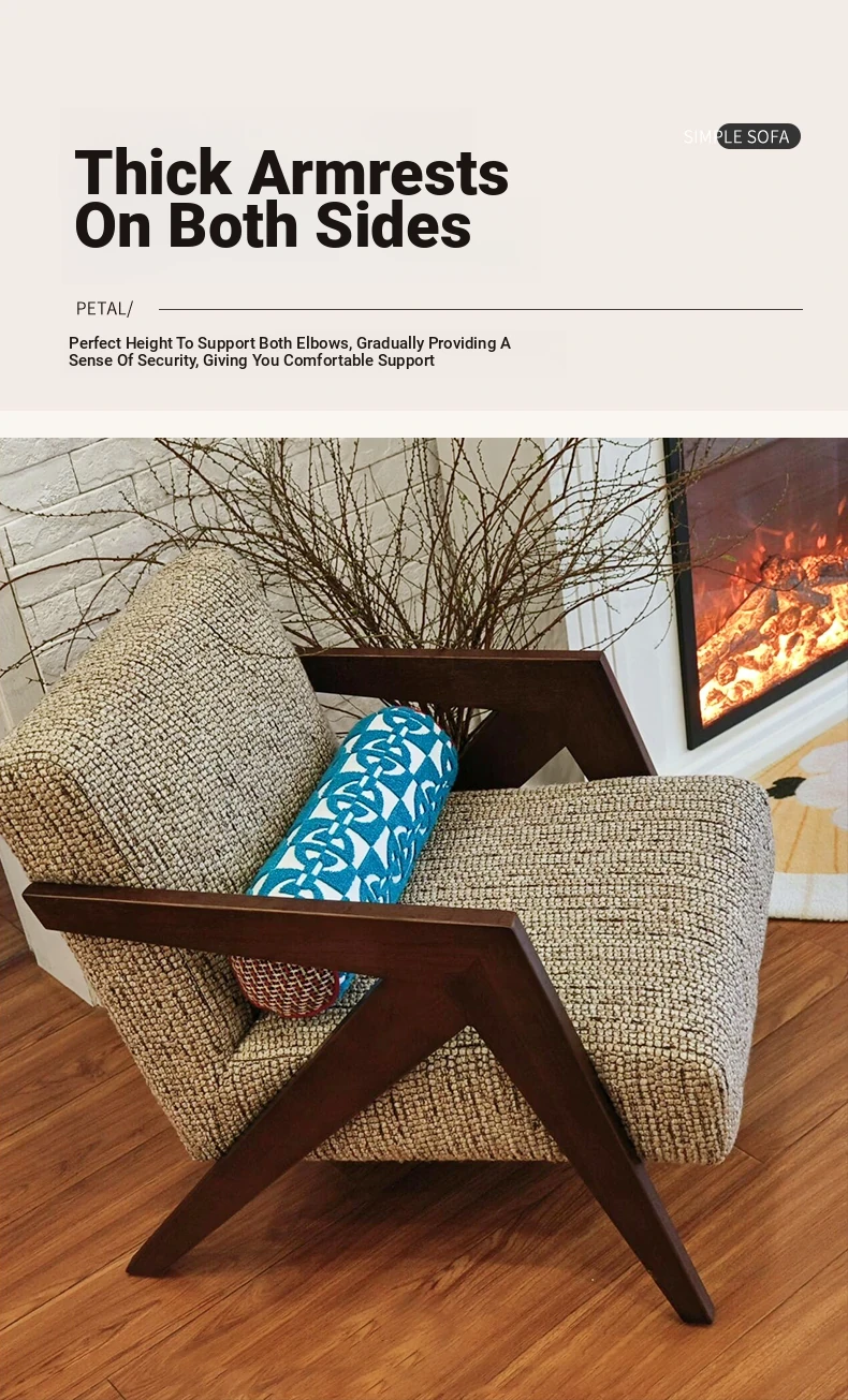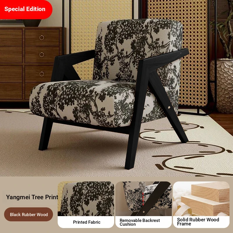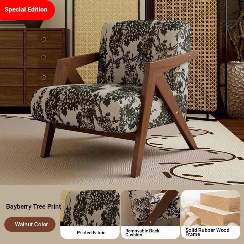 Richard French Designer Single Sofa - Vintage Style Lounge Chair for Living Room and Balcony, Elegant High-End Solid Wood Seating, Perfect for Leisure and Relaxation