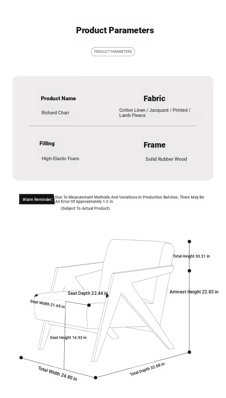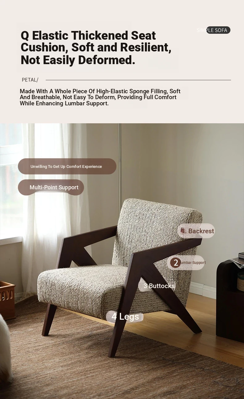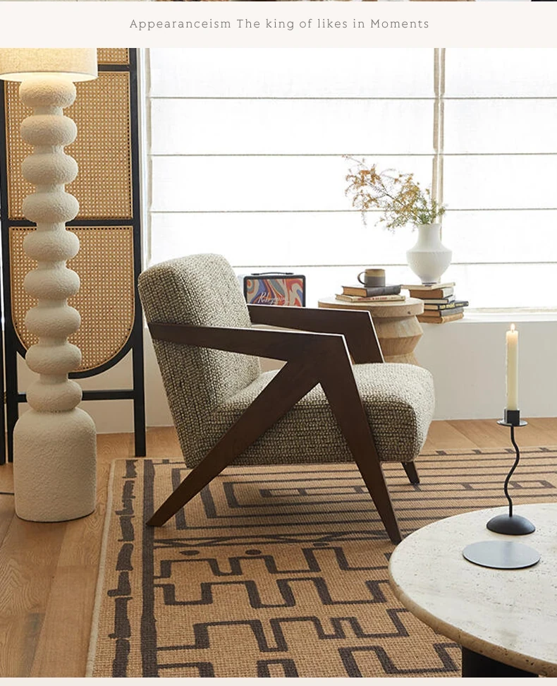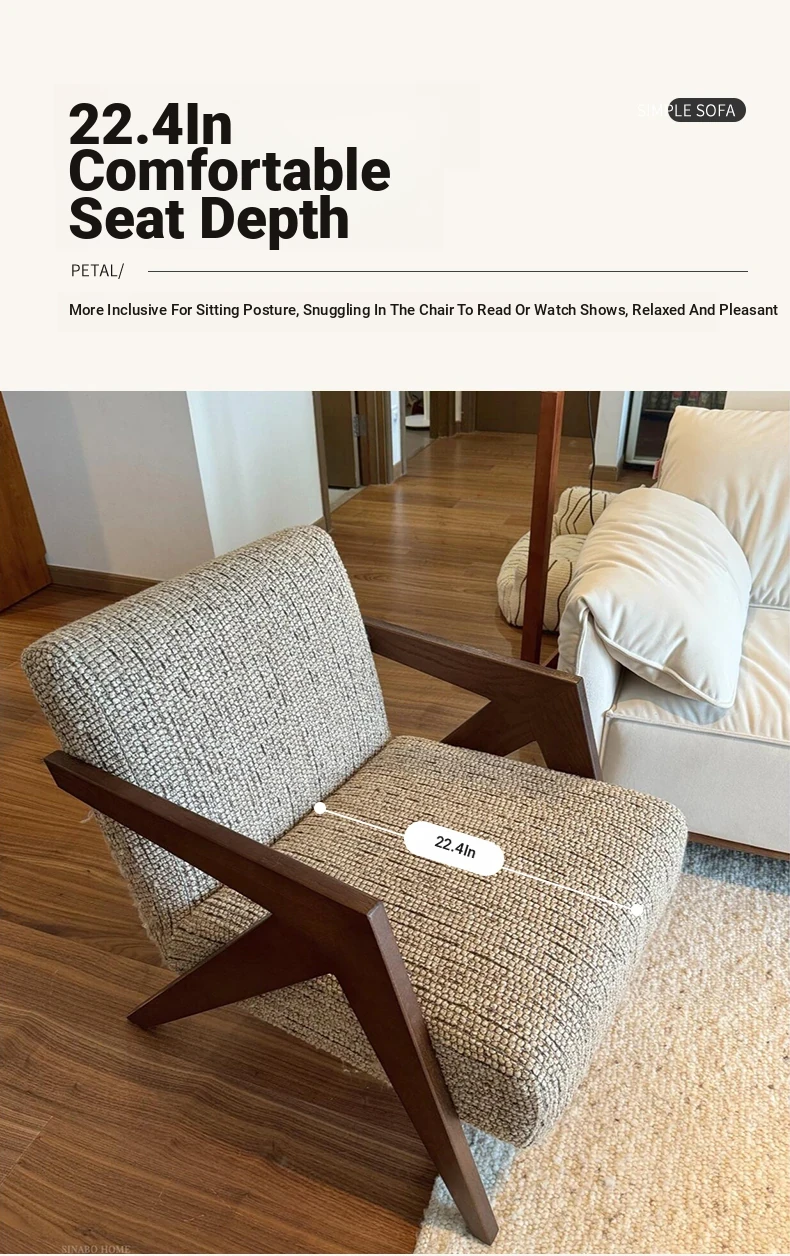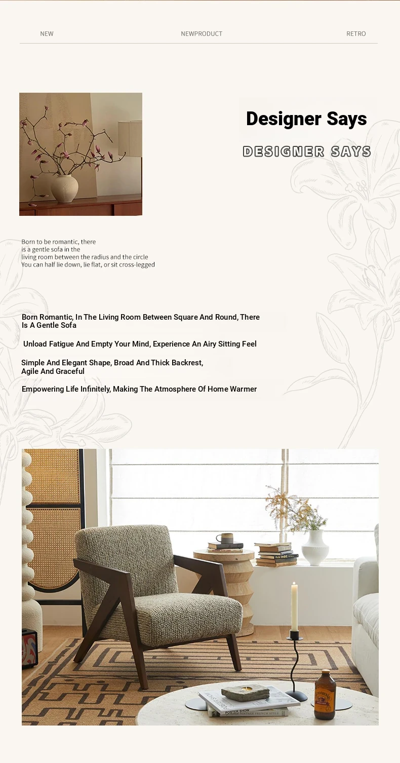 Richard French Designer Single Sofa - Vintage Style Lounge Chair for Living Room and Balcony, Elegant High-End Solid Wood Seating, Perfect for Leisure and Relaxation