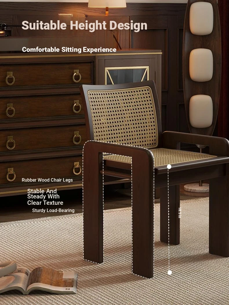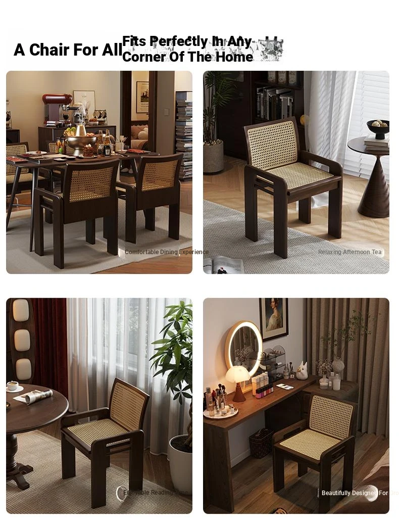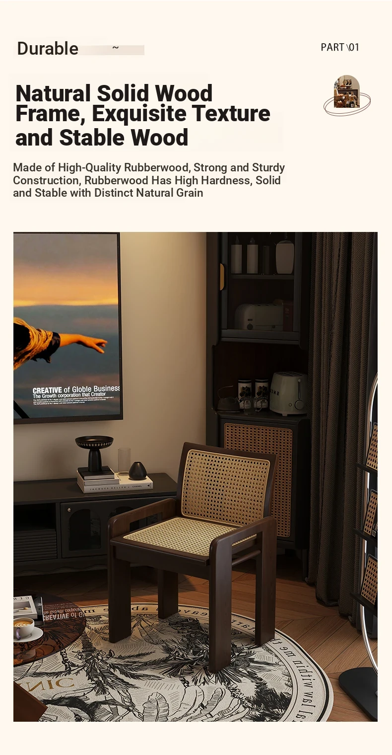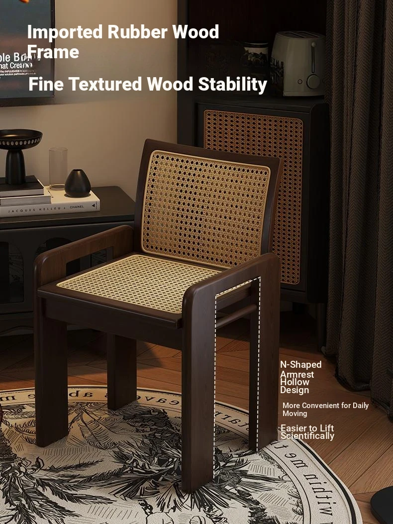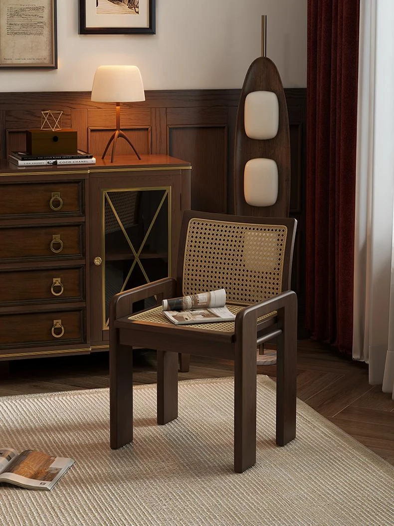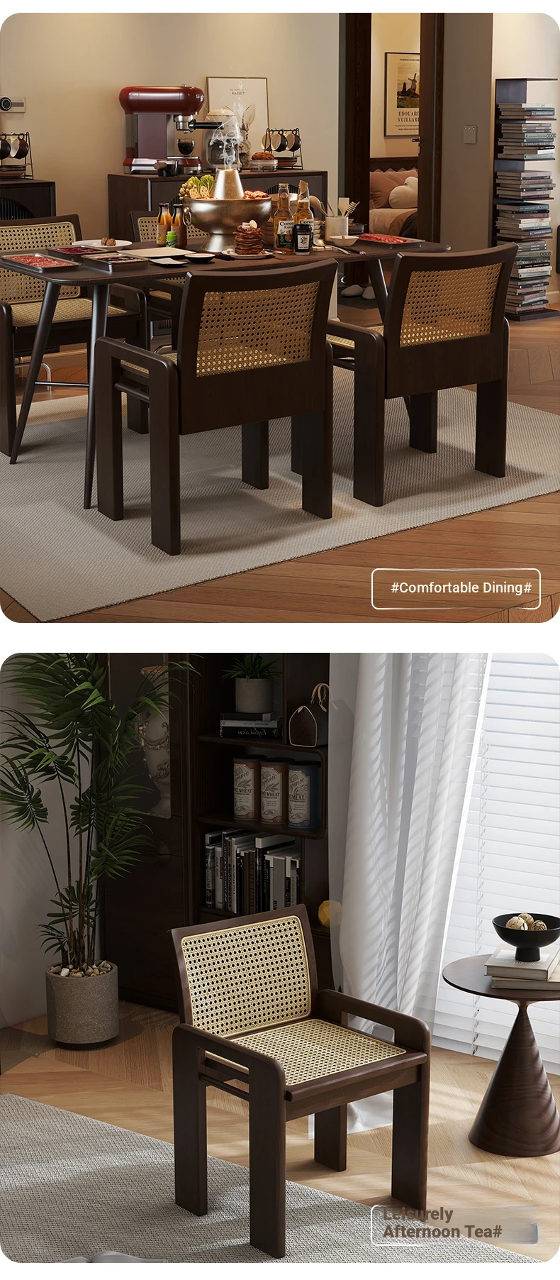 Stylish Solid Wood Dining Chair with Rattan Weaving - Vintage Designer Home Accent, Nordic Retro Dining Set, Perfect for Balconies and Relaxation.