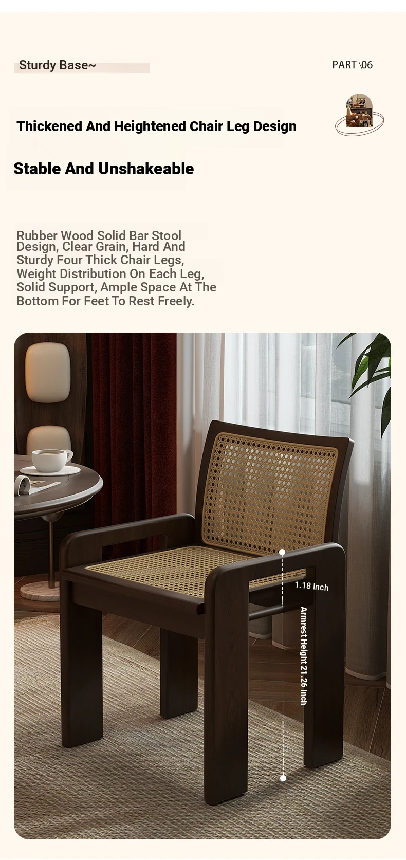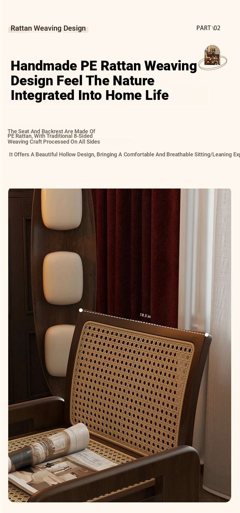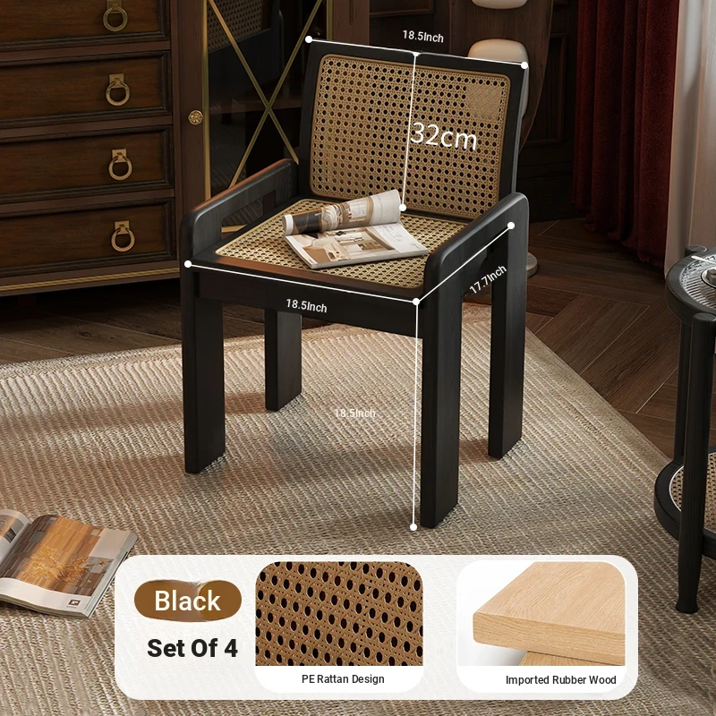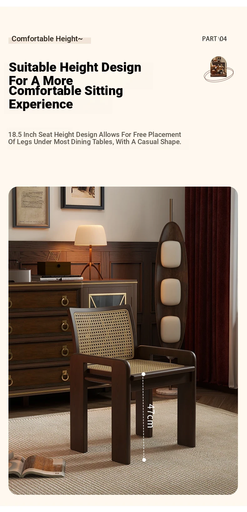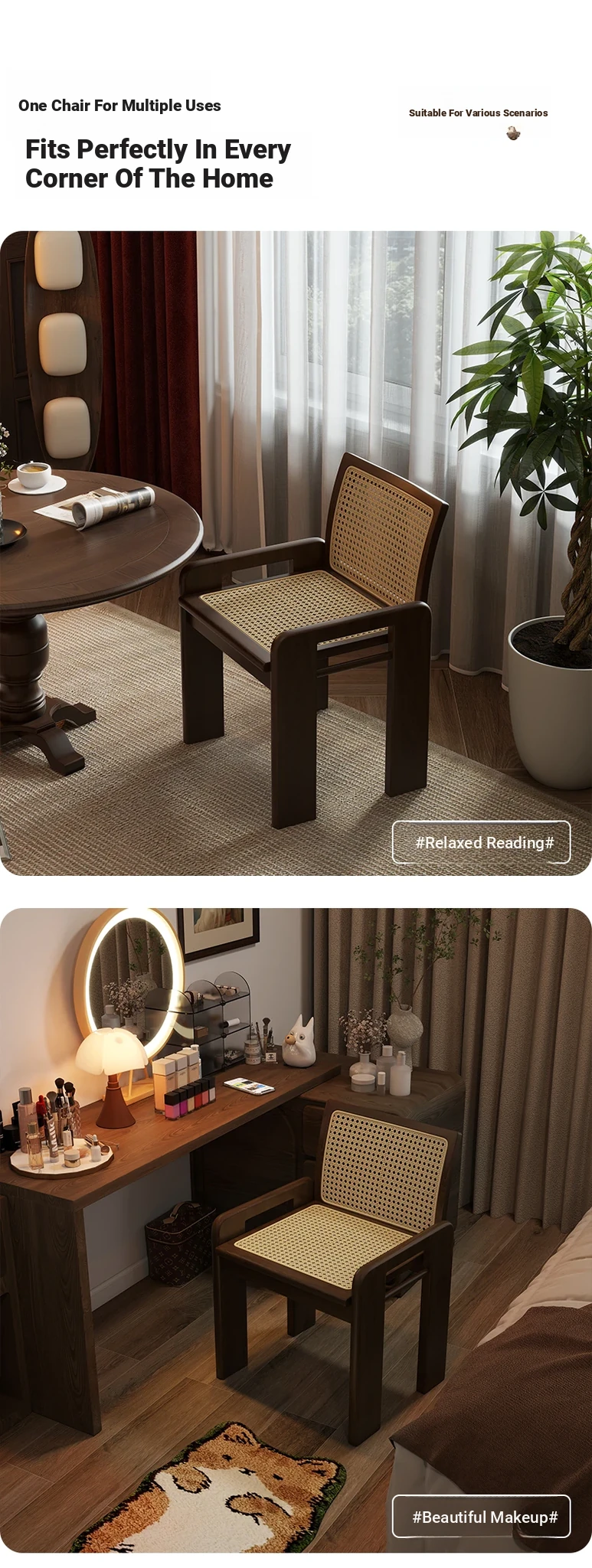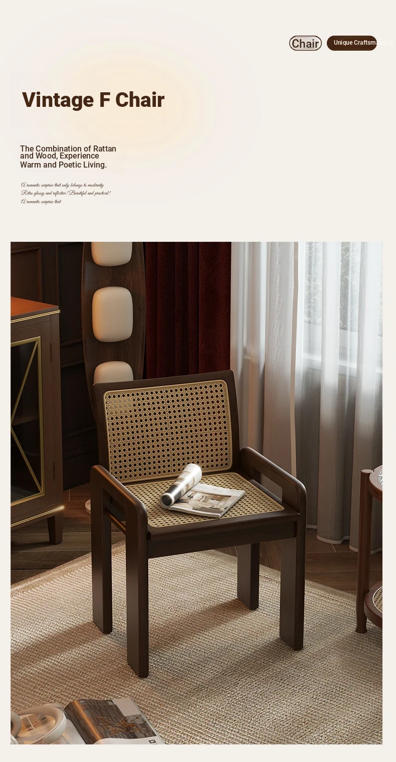 Stylish Solid Wood Dining Chair with Rattan Weaving - Vintage Designer Home Accent, Nordic Retro Dining Set, Perfect for Balconies and Relaxation.