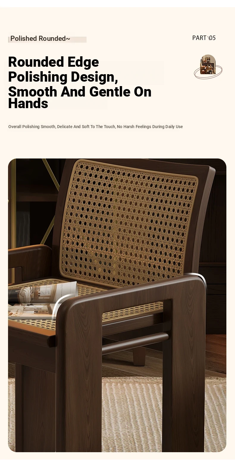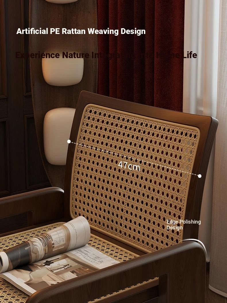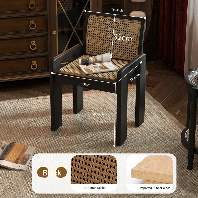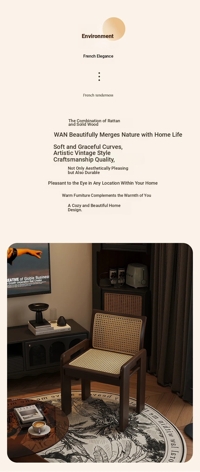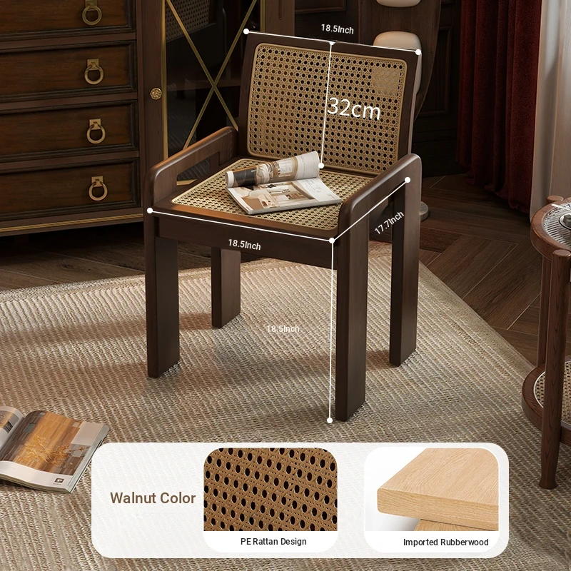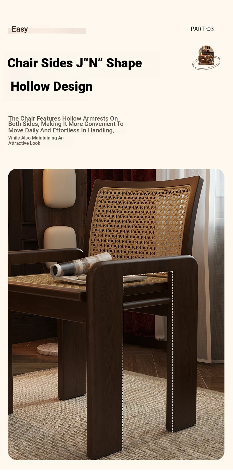 Stylish Solid Wood Dining Chair with Rattan Weaving - Vintage Designer Home Accent, Nordic Retro Dining Set, Perfect for Balconies and Relaxation.