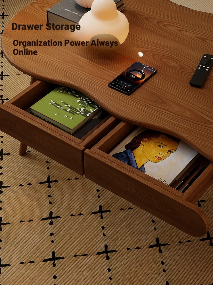 Vintage Solid Wood Coffee Table for Small Living Rooms - Creative and Simple Design with Drawers, Perfect for Home Use and Balconies