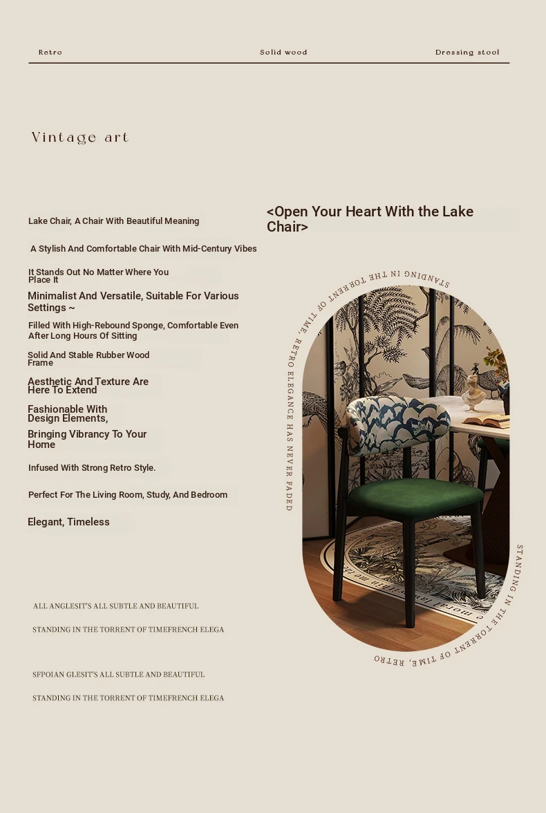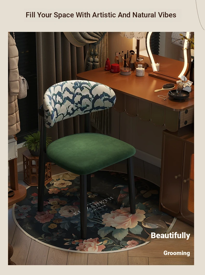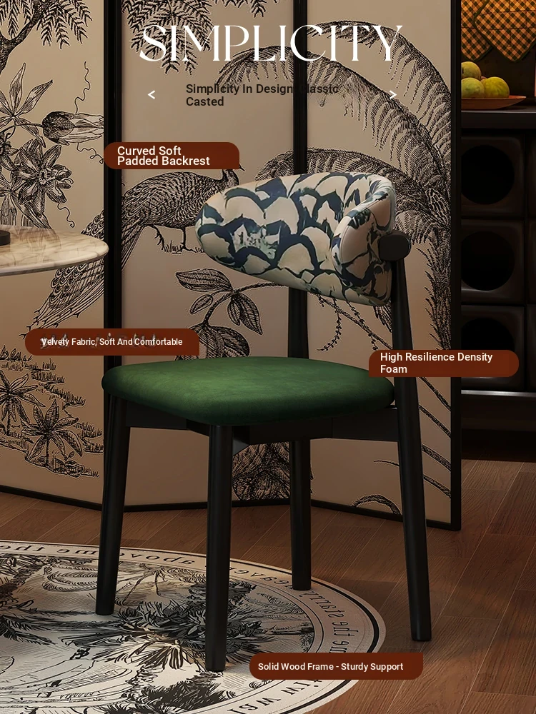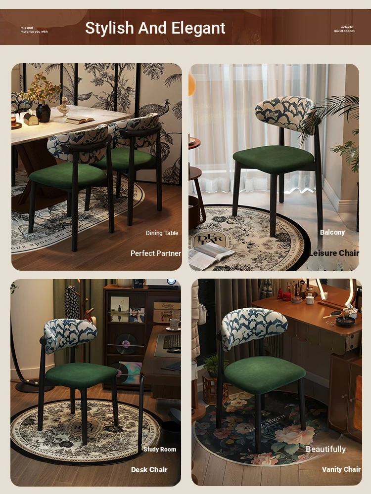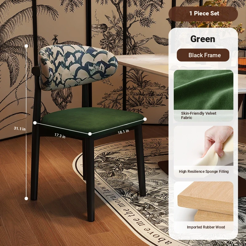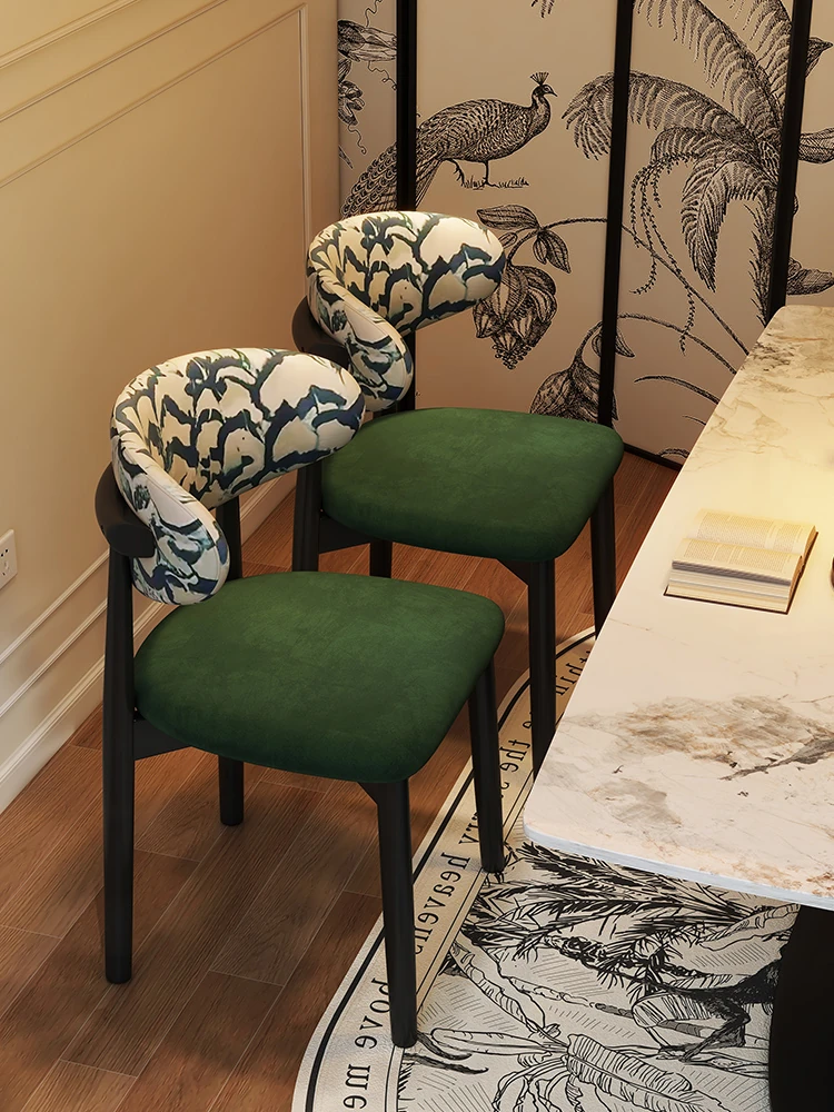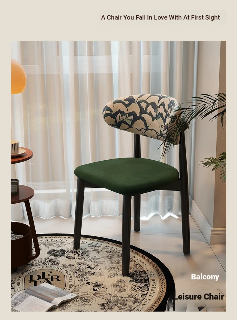 Vintage Solid Wood Dining Chair - Creative Retro Leisure Chair for Home and Restaurant, Stylish Backrest Stool in Green for Dining and Makeup