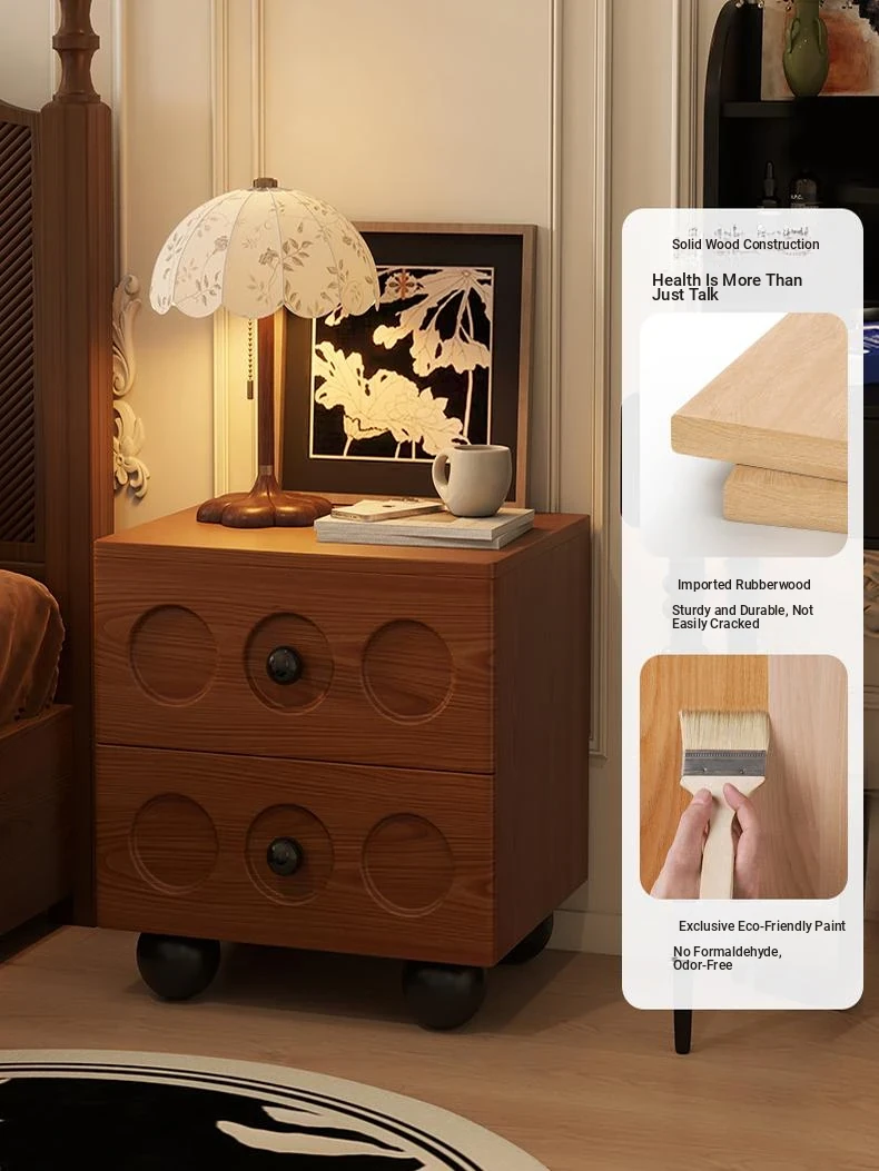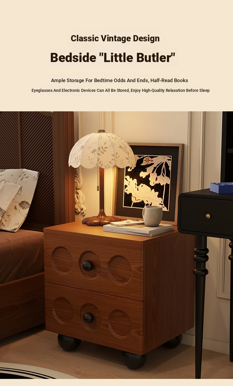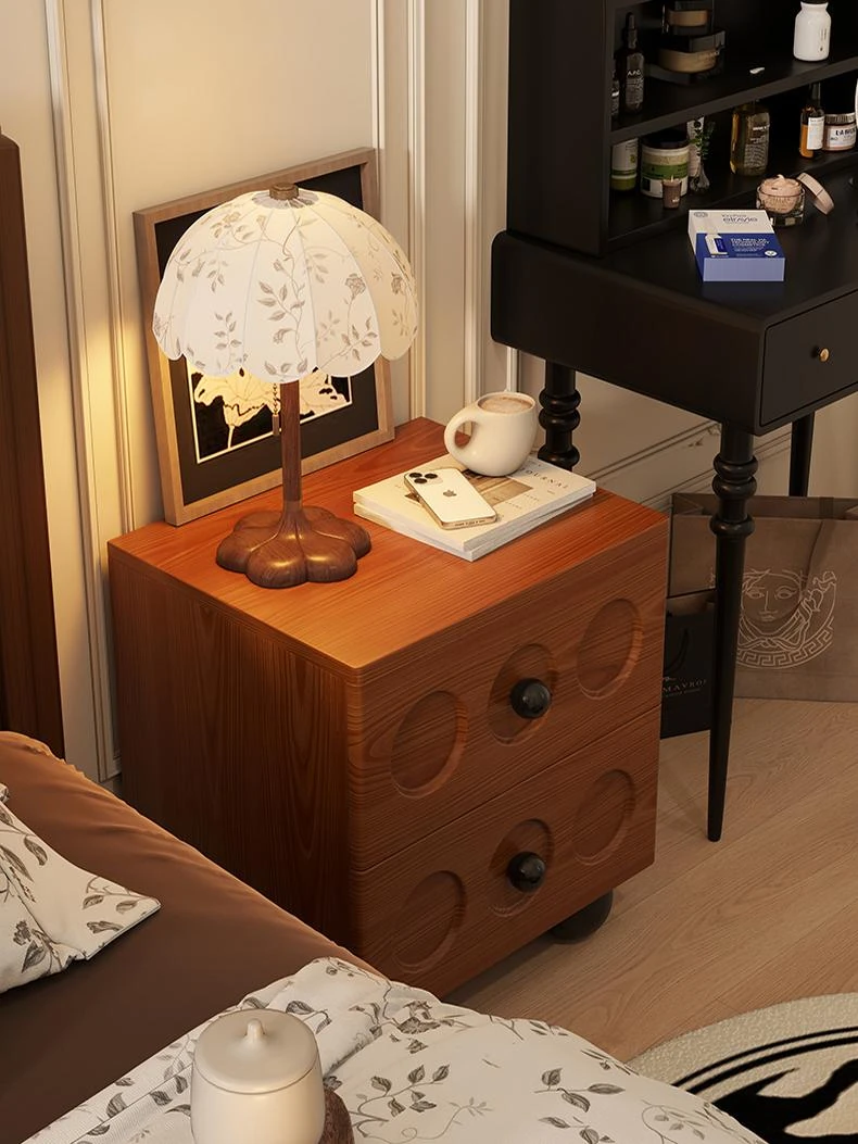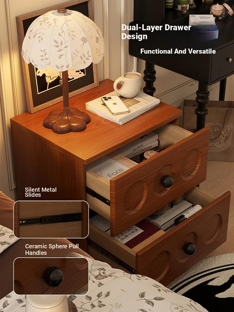 Vintage Solid Wood Nightstand - French Retro Storage Cabinet, Compact Creative Organizer, Chic Luxury Bedside Table with High-end Appeal