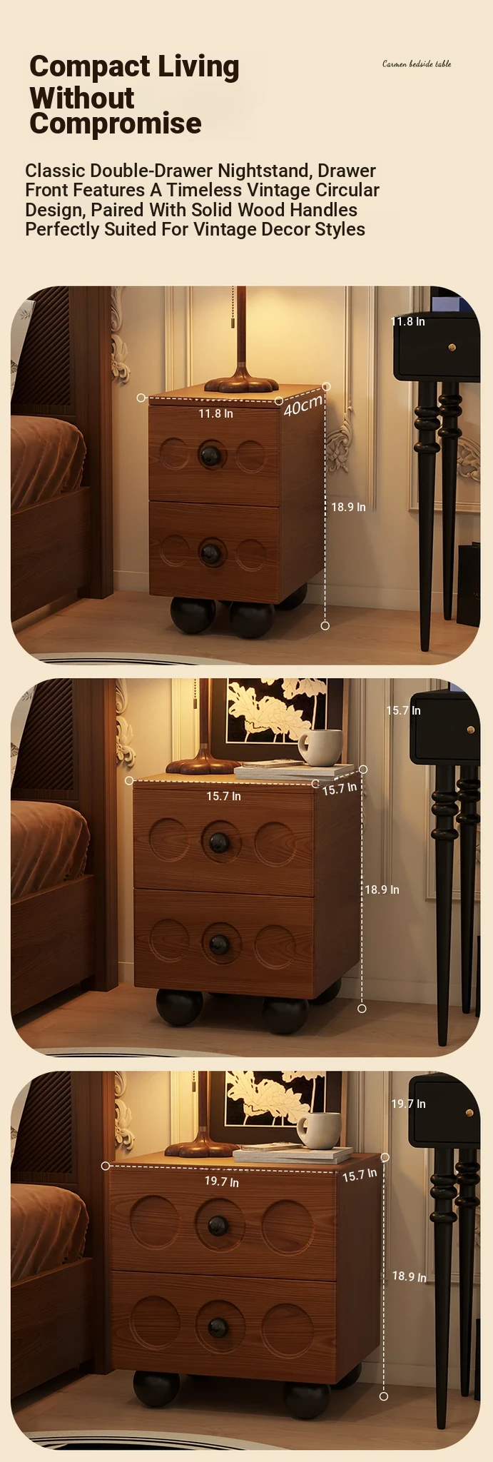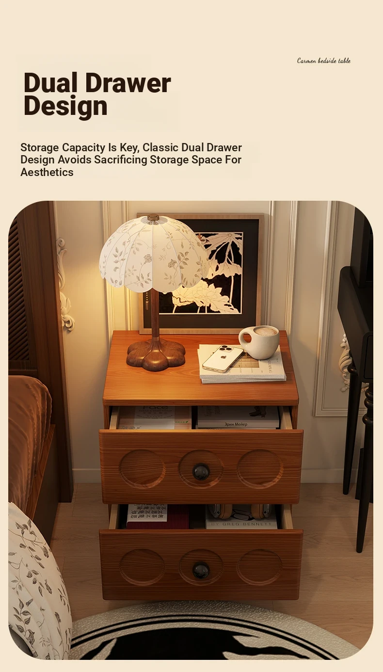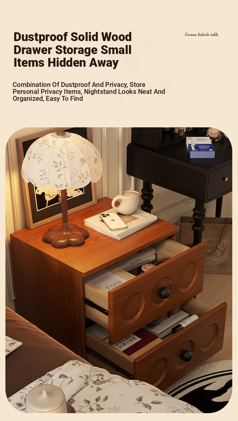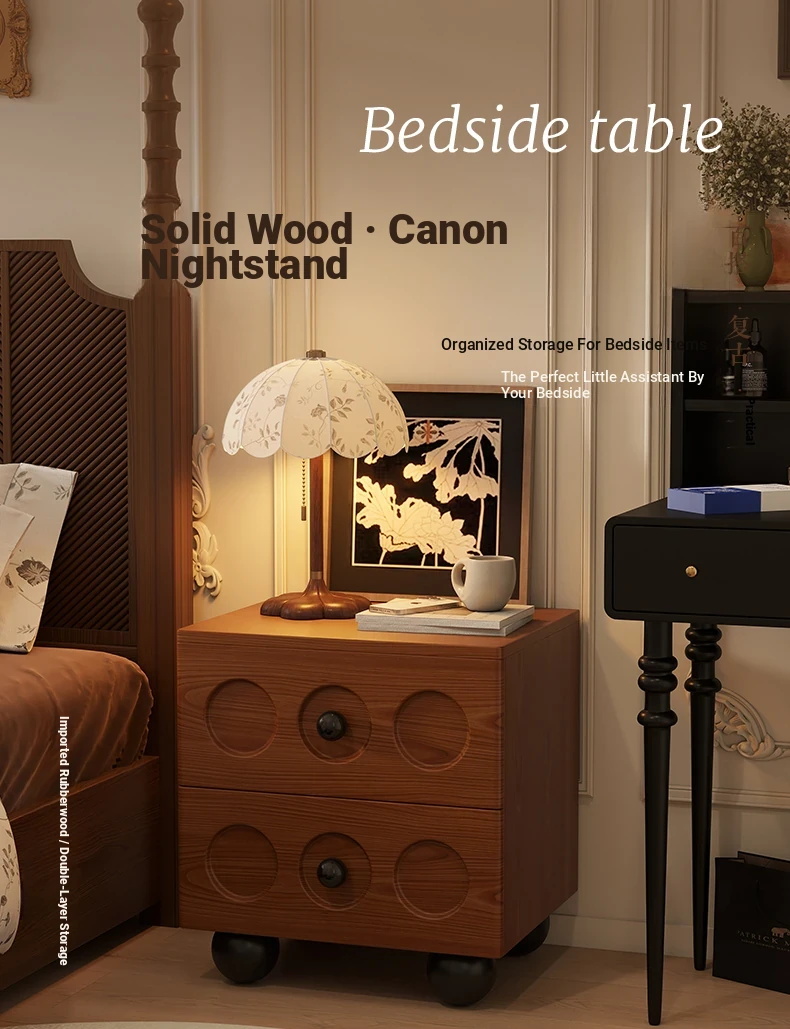 Vintage Solid Wood Nightstand - French Retro Storage Cabinet, Compact Creative Organizer, Chic Luxury Bedside Table with High-end Appeal