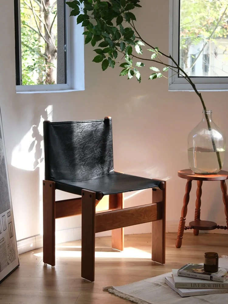 無垢材のパソコンチェア 中古の侘寂風モンクチェア レトロな家庭用デスクチェア シンプルで洗練されたデザインの書斎用椅子